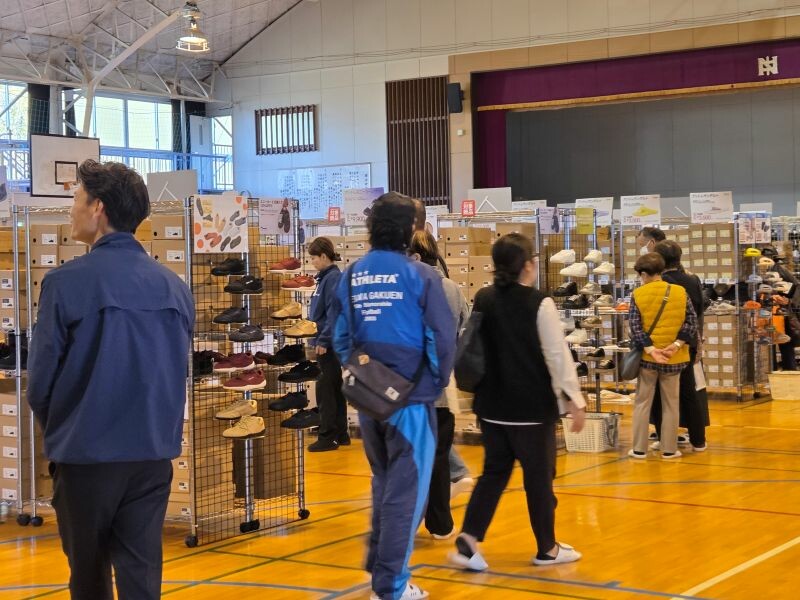 100人くらいのお客様が スニーカーやサンダル、インソールをカゴにいっぱい買い求めてめていて活気がありました。